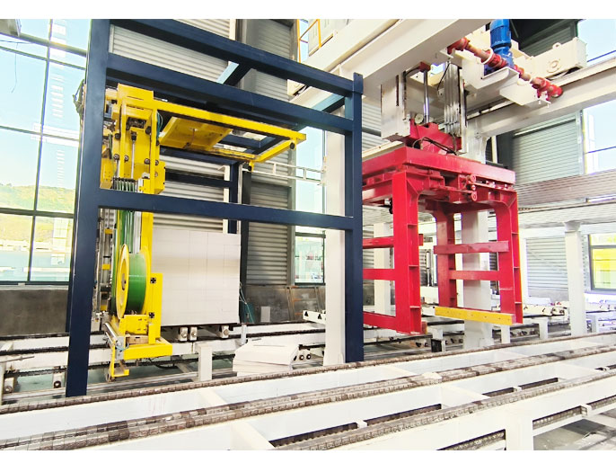產(chǎn)品分揀和包裝工段:掰扳機、成品夾具、砌塊/板材輸送線等。完成蒸養(yǎng)出釜的坯體經(jīng)掰分后由包裝輸送設(shè)備進(jìn)行分揀、碼垛、打包并運送至堆場。